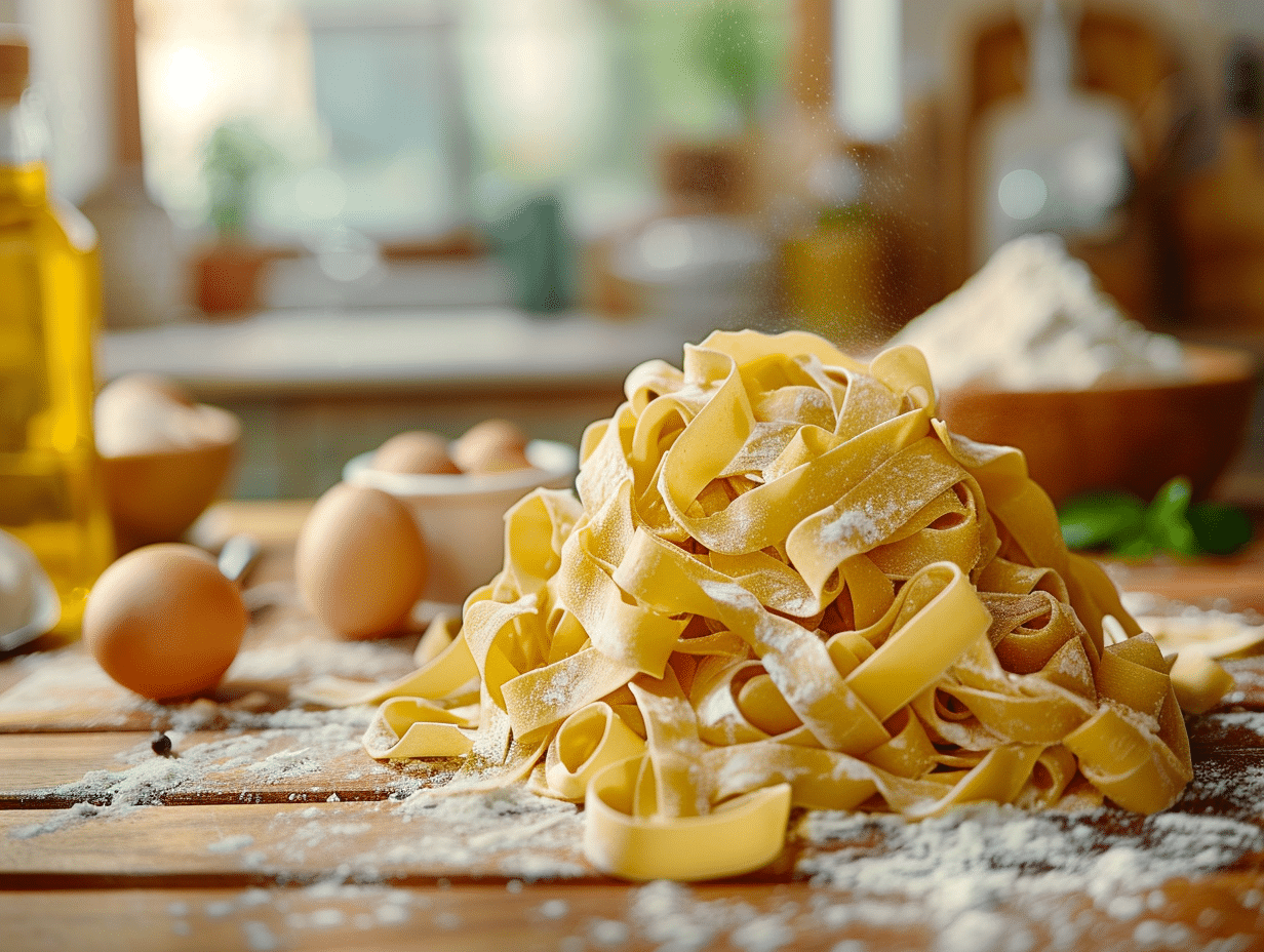 Pour réussir des pâtes fraîches italiennes, optez pour des ingrédients de qualité. Utilisez de la farine de type 00, réputée pour sa finesse, et des œufs frais. Ajoutez une pincée de sel pour relever le goût. En fonction de vos préférences, enrichissez la pâte avec des épices et des herbes aromatiques telles que les herbes de Provence, le cumin ou le paprika.